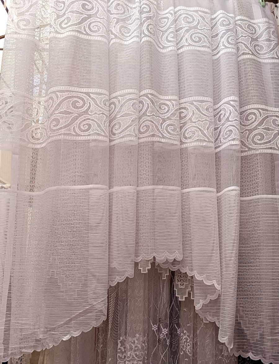 Оформить заказЖаккардовая тюль арка - красивая ткань с сетчатым узором в полос с узором и чистого поля. Это полотно со свисающими краями и укороченная по центу, что предает форму арки. Тюль очень красиво смотрится на окне, особенно практична на кухне, так как не крадет пространство на подоконнике, а дает ощущения достаточного пространства и при этим делает стильным любое окно, будь то кухня, веранда или балкон.