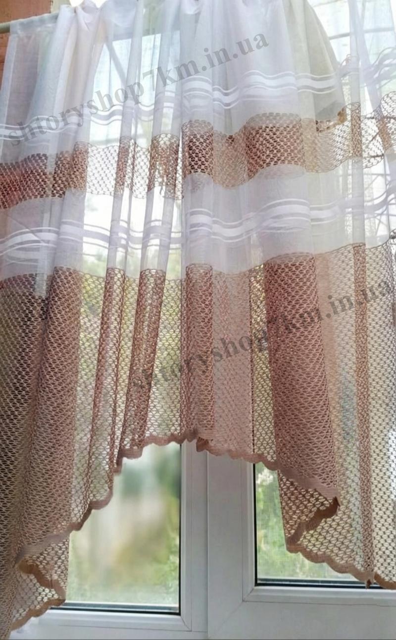 Жаккардовая тюль арка - красивая ткань с сетчатым узором в виде сетки и чистого поля. Это полотно со свисающими краями и укороченная по центу, что предает форму арки. Тюль очень красиво смотрится на окне, особенно практична на кухне, так как не крадет пространство на подоконнике, а дает ощущения достаточного пространства и при этим делает стильным любое окно, будь то кухня, веранда или балкон.